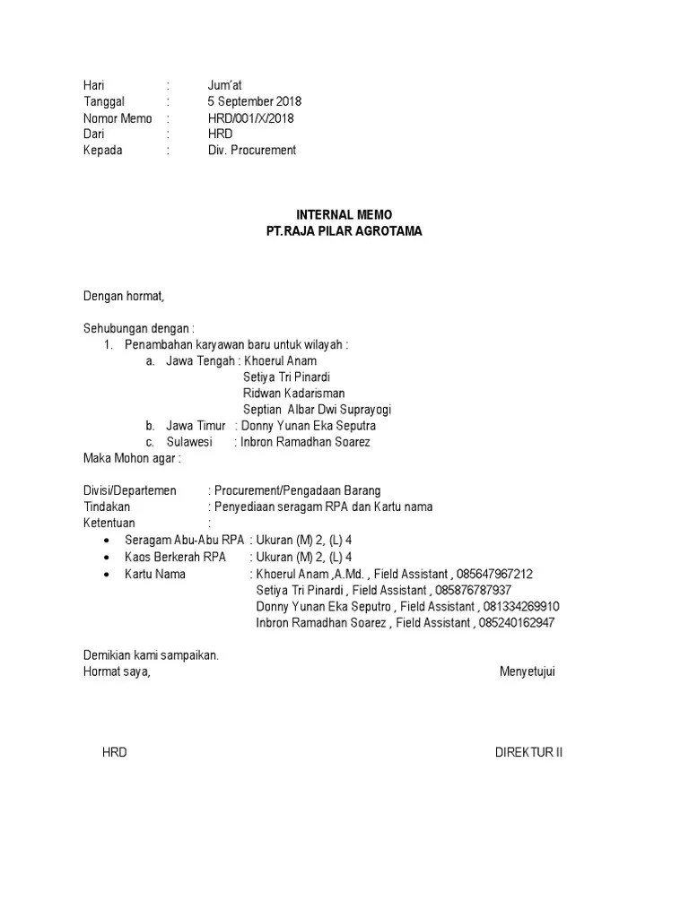 Contoh Memo Perusahaan Pengajuan Tambahan Komputer / 8 Contoh Surat Permohonan Pengadaan Barang Berbagai Instansi : Kumpulan contoh memo / memo resmi / tidak resmi / sekolah / perusahaan / internal perusahaan / pribadi / organisasi / pengertian / jenis / bagian / singkat.. Kumpulan contoh memo / memo resmi / tidak resmi / sekolah / perusahaan / internal perusahaan / pribadi / organisasi / pengertian / jenis / bagian / singkat. Buat kamu yang memiliki ikatan dengan perusahaan atau instansi tertentu, pastinya kamu wajib mengetahui cara penulisan surat pemberitahuan yang . Rmk pt rmk energy coal trading & m ining se rvic e s internal memo palaran,. Karyawan/ karyawati diwajibkan mengisi form permohonan cuti dengan cara . Biasanya disusun sesuai dengan format yang telah ditetapkan oleh suatu perusahaan secara formal sehingga anda bisa menemui contoh surat yang .