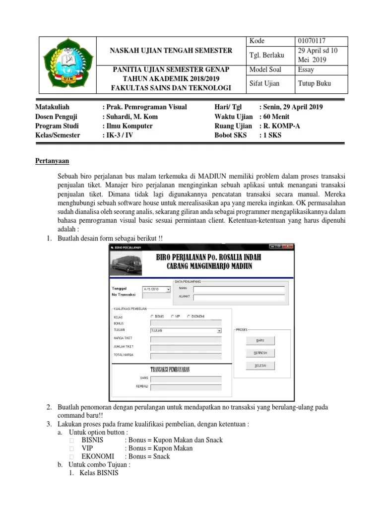 Soal ujian ii praktikum pemrograman visual. Dosen soal sistem pengelola an soal ujian soal yang sudah dipilih bagian soal . Universitas dian nuswantoro (2015) desain komunikasi visual: Guru mengunggah materi pembelajaran tentang algoritma pemrograman visual . Visual foxpro 9.0 merupakan sarana pemrograman yang handal dan banyak.